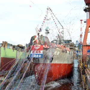 2019.03.30ニュースリリース 3/30(土) 650総トン型旅客船兼自動車渡船が竣工致しました。 2019年3月30日 土曜日 10時00分 1582番船 独立行政法人 鉄道建設・運輸施設整備支援機構/粟島汽船㈱殿向け650総トン型旅客船兼自動車渡船「フェリーニューあわしま」が竣工致しました。 Tweet ニュースリリース, 建造実績, 貨客船 3/28(木) 1588番船の進水式が行われました。 4/19(金) 749総トン型貨物船が竣工致しました。 関連記事一覧 11/19(水) 1688番船の進水式が行われました。 3/25(月) 749総トン型液化ガスばら積船が竣工致しました。 2/5(水) 1683番船の進水式が行われました。 11/19(火) 1615番船の進水式が行われました。 3/13(水) 199総トン型旅客船兼自動車航送船が竣工致し... 4/7(火) 1610番船の進水式が行われました。